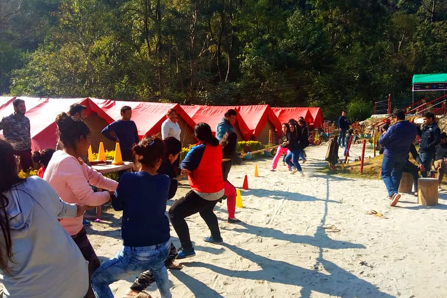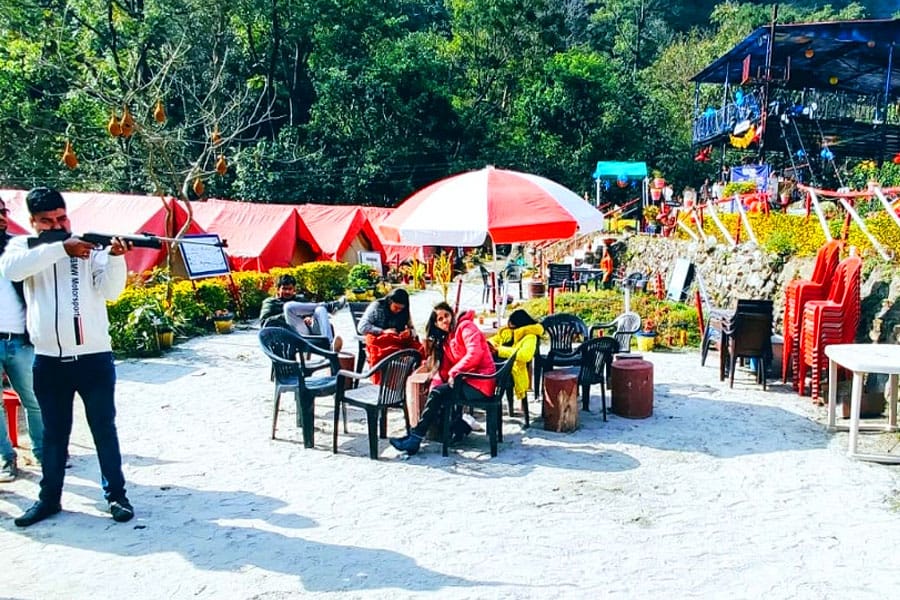 While enjoying a cup of tea from your luxury tent you can enjoy the beautiful scene which river Ganga offers you. Camp is surrounded by lush green forests and breathtaking views of the great Himalayan Mountains that provide an intimate connection with nature. Camp is a one-stop destination for all your adventure quests within the camp premises like the Zip-Line, Burma Bridge, Sky-Walk, Tyre Obstacle, Archery, Shooting, Volleyball, Badminton and Swimming pool.